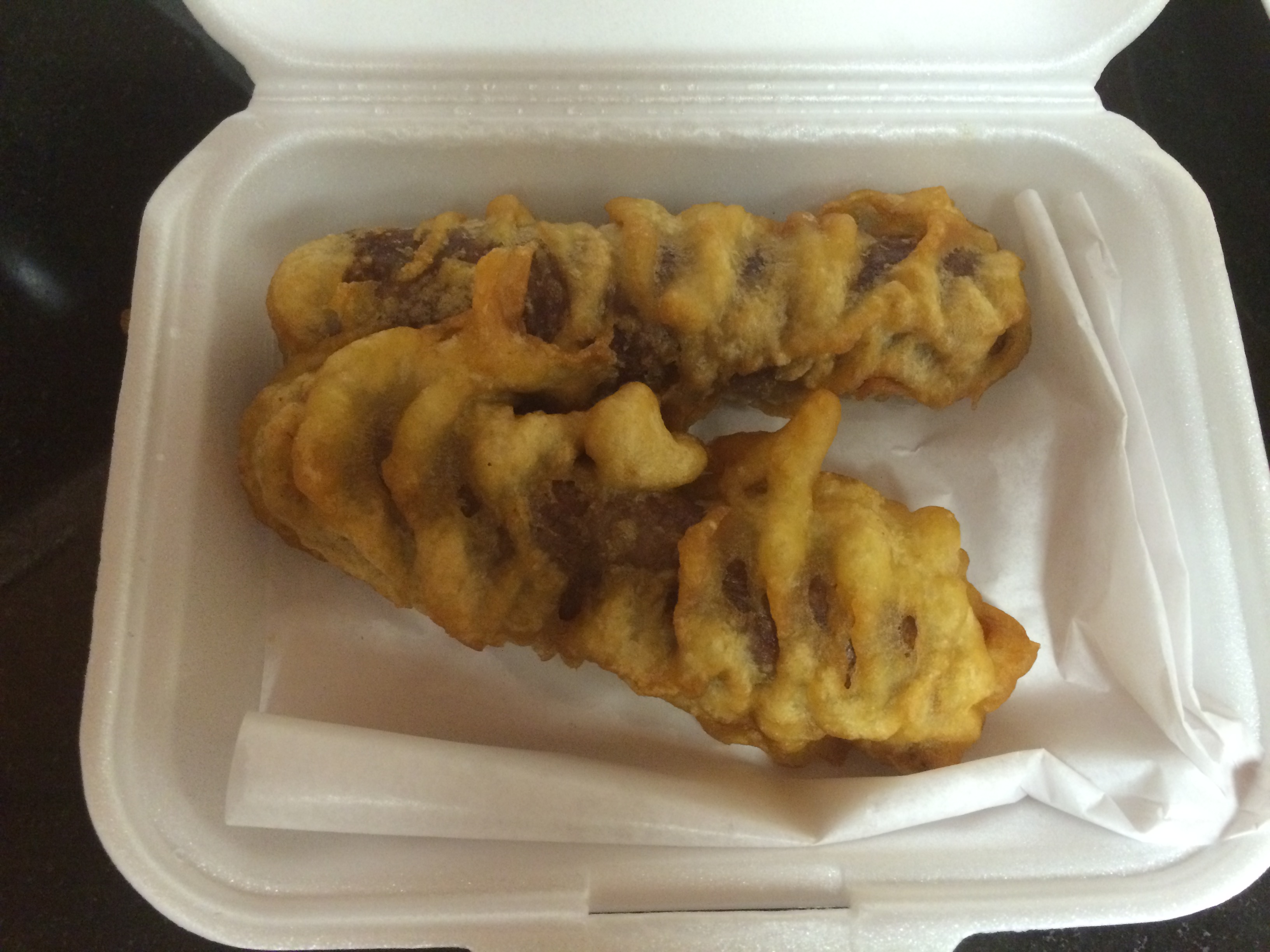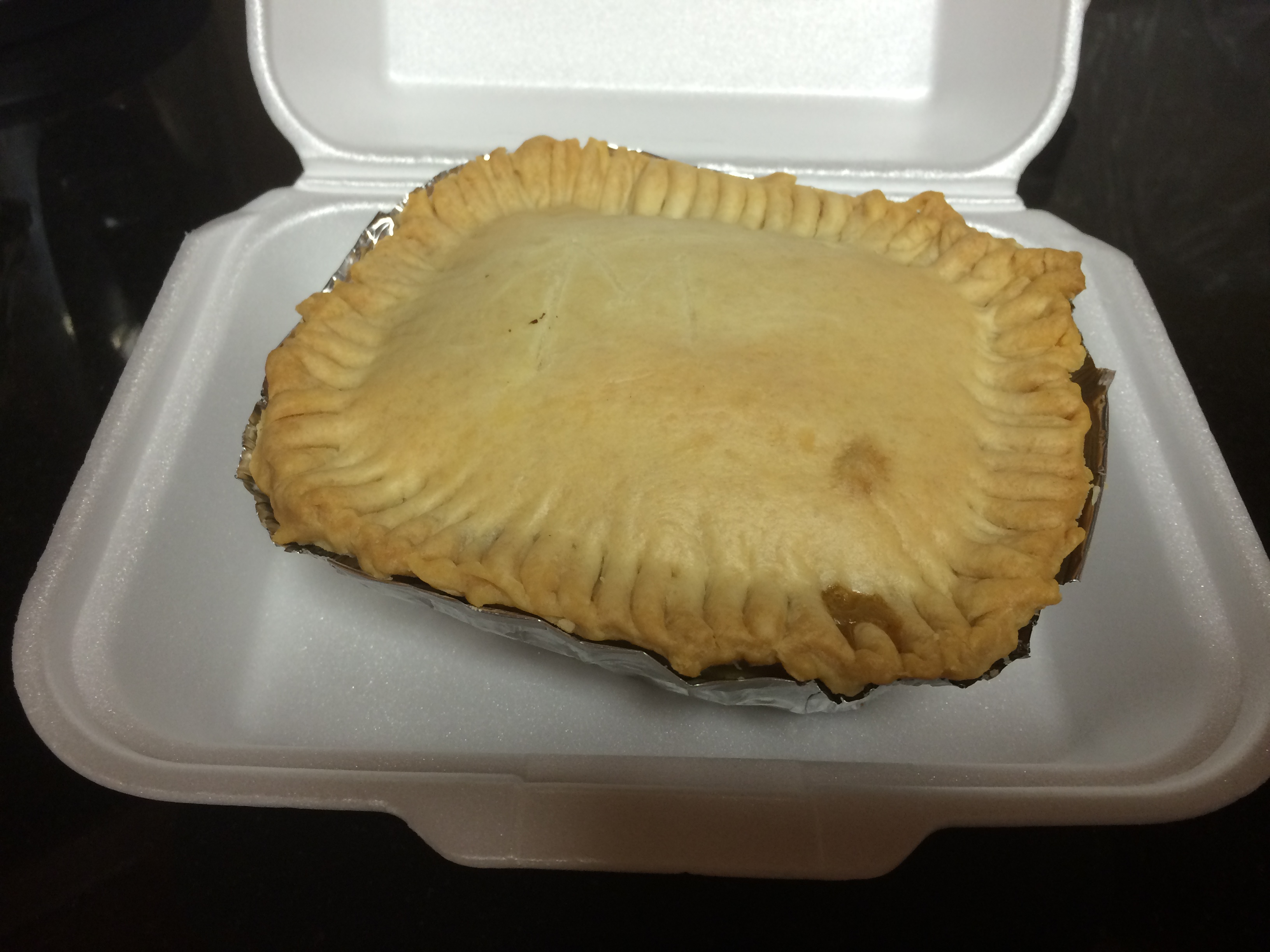 The food was piping hot and delicious, like ‘ proper’ fish and chips. The chips were chunky and crispy on the outside, soft on the inside the fish batter was light and not too greasy. The pie had a lovely pastry and a creamy chicken and mushroom filling. The battered sausage was a proper beef sausage rather than a hot dog sausage and it was so good!