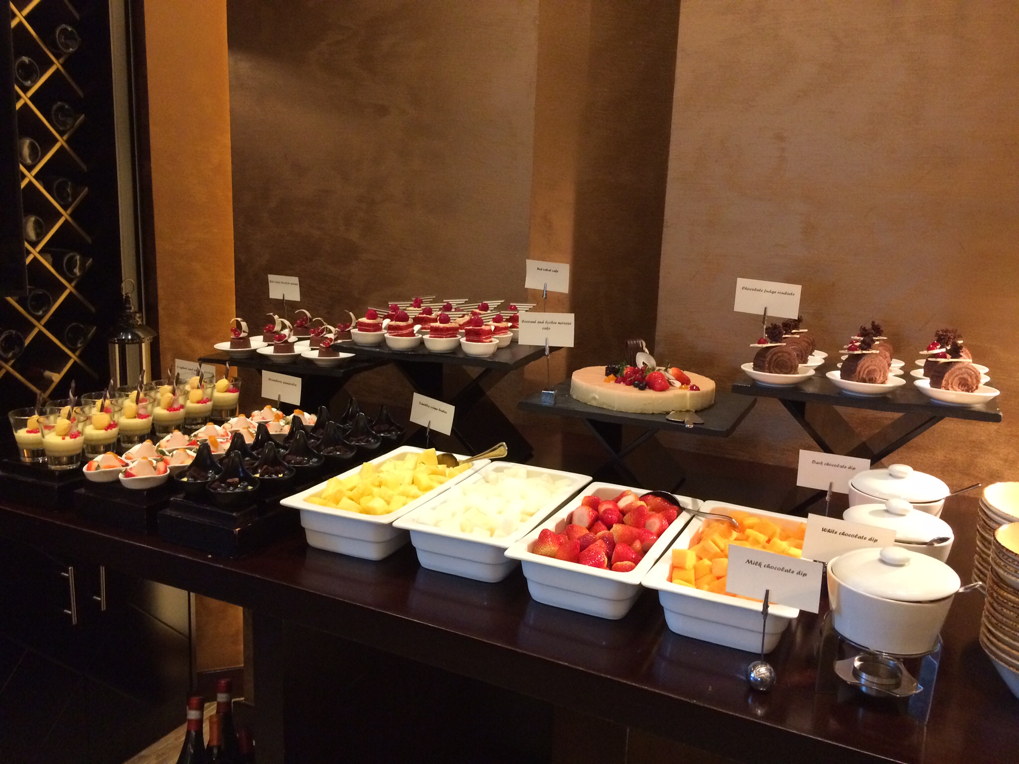 Eventually we moved on to desserts and I think I ate the majority of the churros dunked into melted milk chocolate – they are very moorish. There were also fruit tarts, cheesecake, mousses and sponge cakes in addition to lots of fresh fruit for those being a little bit healthier. Drinks were served to the table continuously – unlimited wine or a variety of sangria flavoured with different fruits. I stuck to the strawberry sangria which was very sweet and not too strong and I was told the wine choices were very good. One small gripe and perhaps a misunderstanding on our part was that if you were paying for food only no drinks at all were included not even water. If you don’t opt for the drinks package remember to factor in the cost of water and soft drinks into the overall bill – our mum to be and other pregnant ladies were able to adapt their drinks package but you may want to confirm this with the restaurant first.