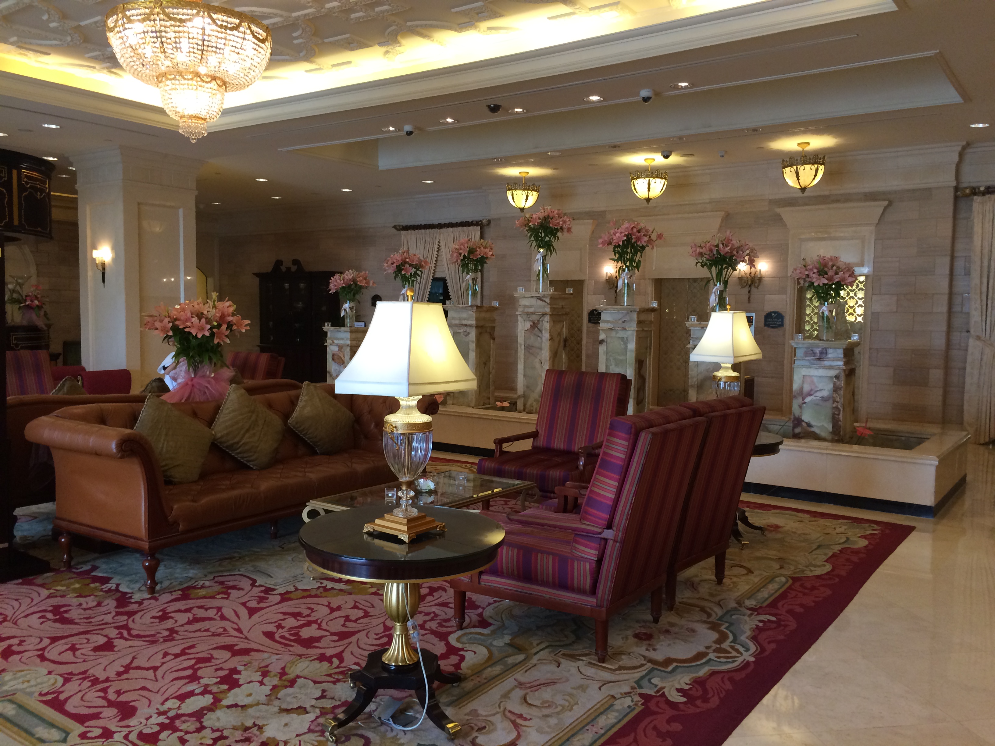 I like the mock chateau design of the Grand Heritage hotel, the gardens and ground are really pretty and the lobby area although small is nicely furnished with a beautiful display of lilies. We had booked afternoon tea in the Victoria Tea Room which is located just off the lobby and is decorated in dark paneled wood and luxury fabrics based on a library or reading room.