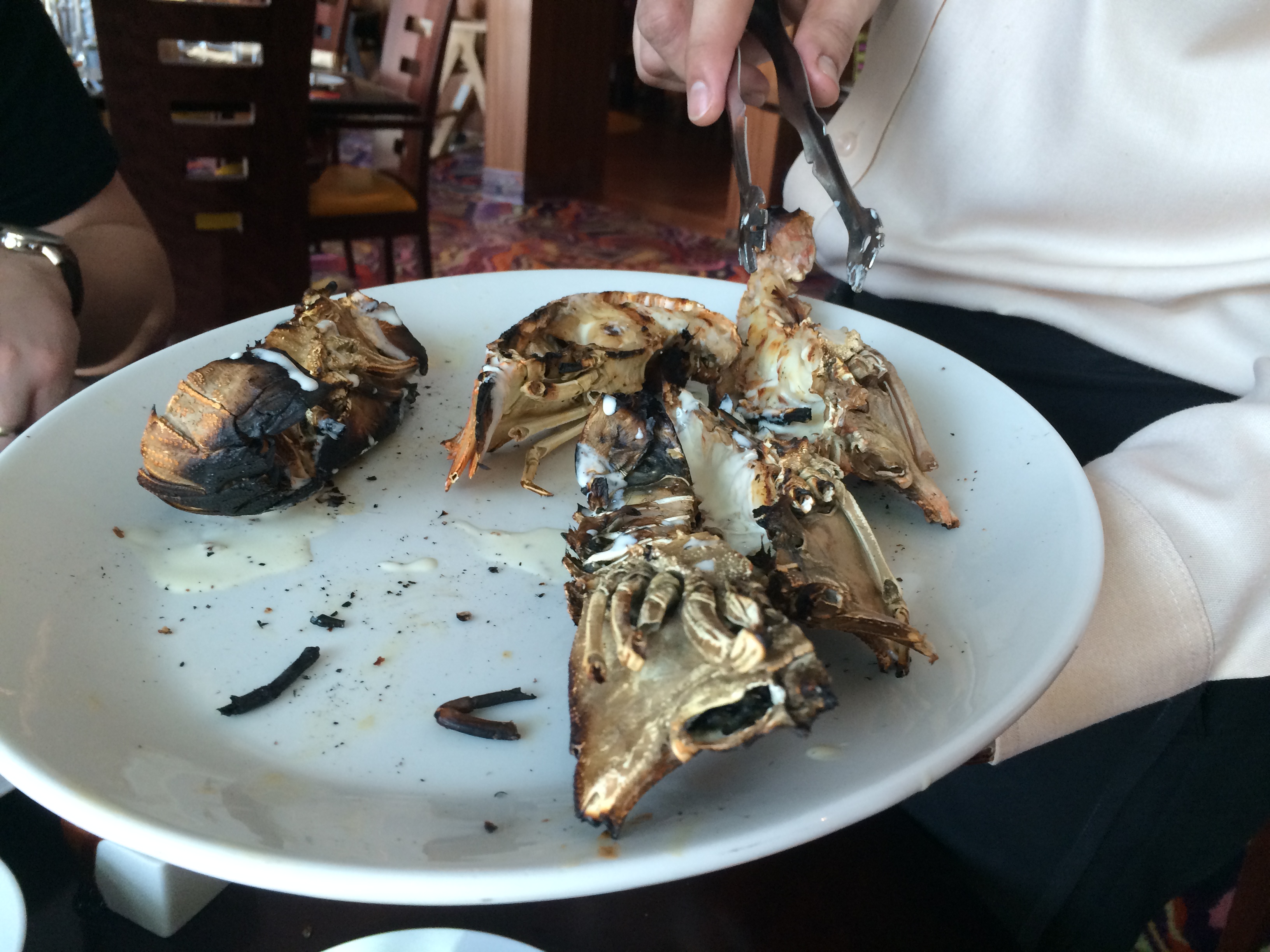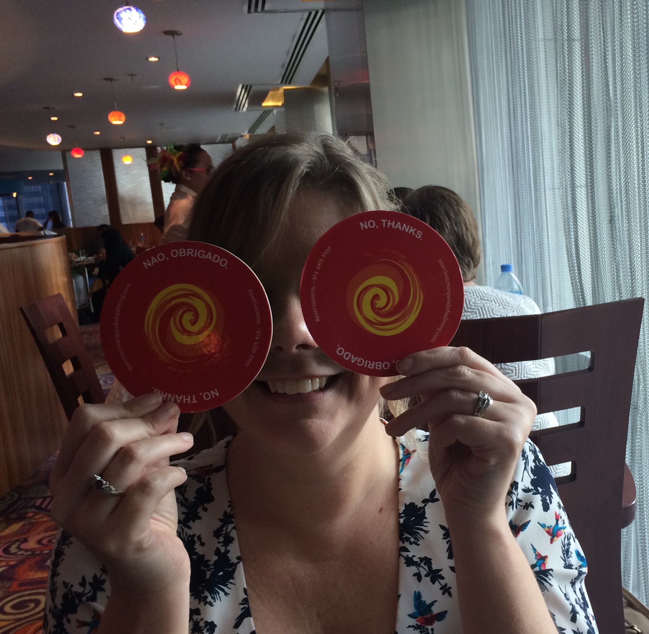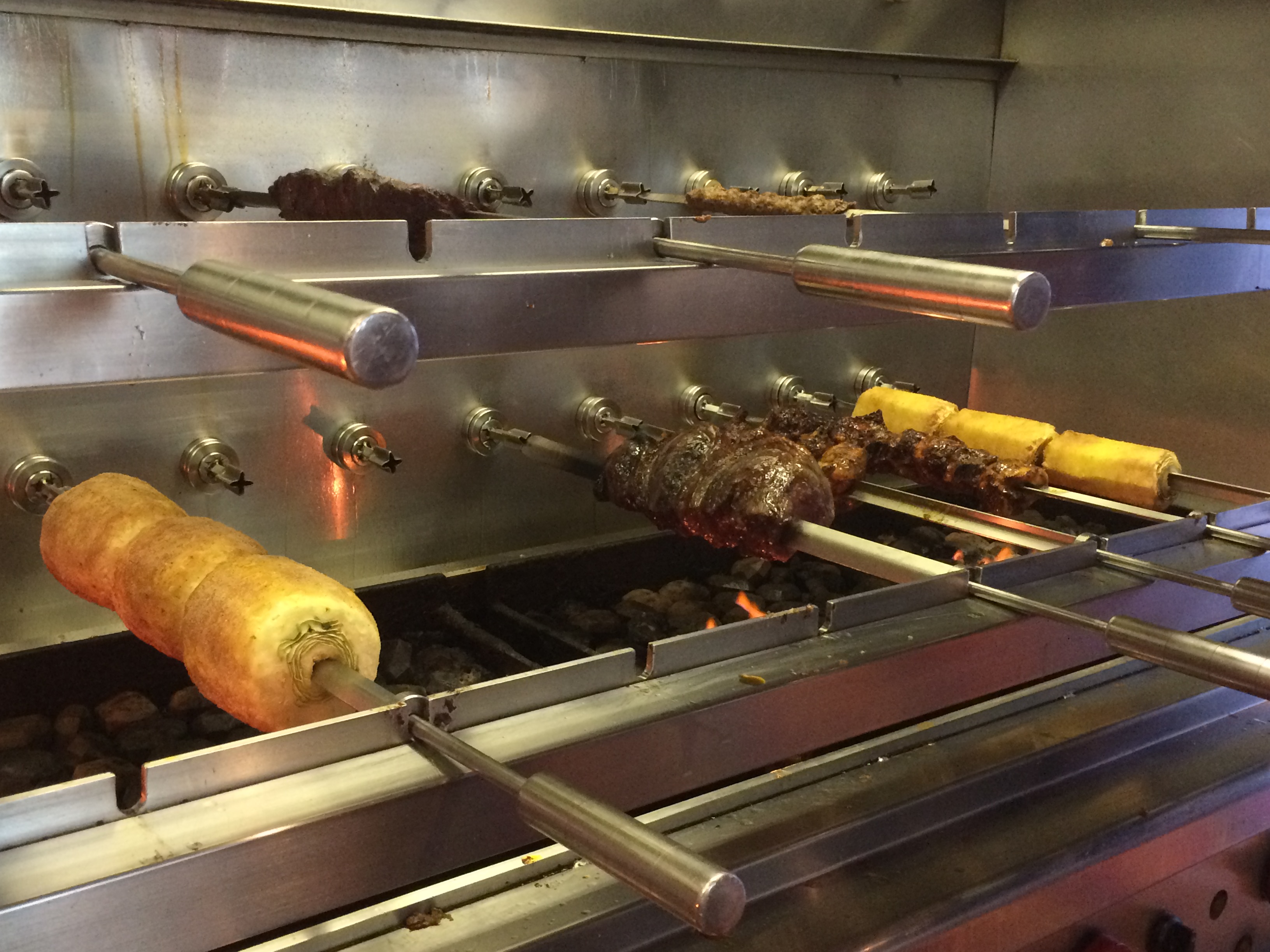 As we returned to our table we had been served tapioca, fried bananas, beans and polenta in small dishes to compliment the meat then, the stars of the show arrived, and continued to arrive at regular intervals throughout the next 3 hours. Huge skewers offering various cuts of lamb, beef and chicken cooked and seasoned perfectly, bowls of braised short ribs, plates of lobster and cinnamon roasted pineapple. Wow, it was meat heaven! I particularly liked the deliciously tender braised short rib and the garlic infused beef. As the meat was sliced you caught it with the small tongs provided and, at first, it seems a bit odd only being served one slice, but you soon realise it is very filling and the staff are constantly checking if you want more by looking at the green and red cards on the table.