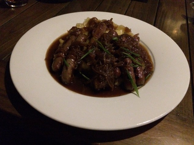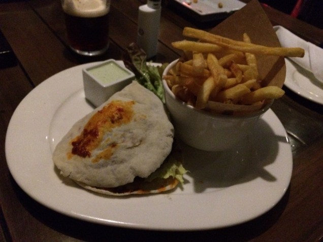 We ordered food from what I’d consider a ‘pub grub’ menu. I opted for veal sausages with mash and onion gravy, Greg chose a burger. The food arrived quickly and was really hot and fresh. My sausage and mash were delicious and it was a really big portion consisting of 7 sausages and a mound of mash. It enjoyed it but unfortunately the onions were very, very salty so I left them. Greg said his burger was fantastic.