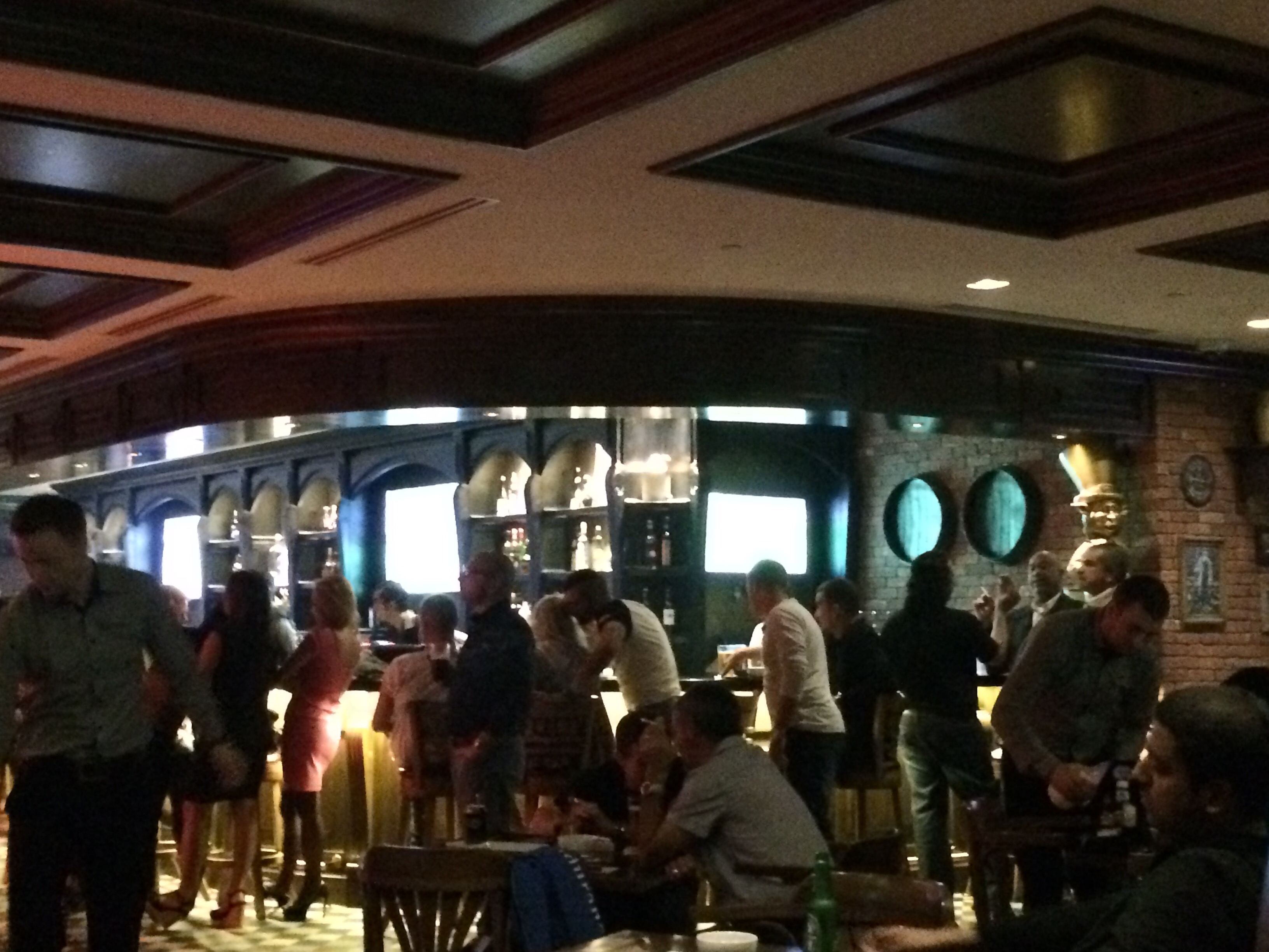 Having spent a great night at the Latino Steakhouse at the Sheraton on NYE we decided to head to the Sheraton on Friday night with friends to check out the Irish Harp. As I understand it if you have residency in Qatar you need to become a member – women 50QR, men 100QR – this gives you access to happy hours and other promotions. If you are a visitor you can just show your passport and you don’t pay an entry fee. Once inside I was impressed at how spacious it was. There’s a large bar area with stools, then a variety of tables and booths. We grabbed a booth and took advantage of the half priced drinks as it was happy hour 5-8pm although frustrating soft drinks were still full price (I’m attempting dry January!) Although it was fairly quiet when we arrived about 7pm it soon filled up and there was a good atmosphere