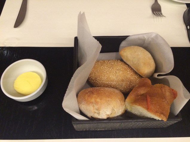 We seemed to have had a W Hotel themed weekend after spending Thursday Happy Hour and Friday Brunch in Spice Market and then going to Market by Jean Georges for lunch on Saturday. The express lunch at Market is great value at 98 QR for 3 courses and there is a good choice of dishes for each course to suit the majority of people. I like the design of Market, its bright and modern with clever use of dividers to break up space. It was a bit odd however that they filled all the tables in one section and it felt a little cramped, it would have been nice to be more spaced out as the restaurant wasn’t full.We quickly placed our orders and were given a lovely basket of warm, fresh bread. I think a good bread basket is the sign of a good meal to come and we soon finished it. Luckily our starters arrived before we could devour any more.