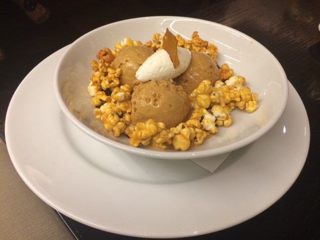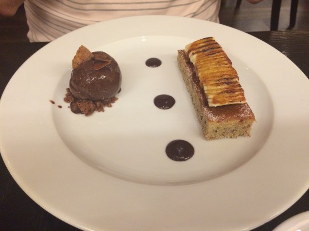 We were feeling rather full by this point and probably wouldn’t have ordered dessert if it wasn’t included in the lunch offer. My salted caramel ice cream sundae with popcorn was lovely though I would have liked the ice cream to be a little saltier – it was a huge serving but I battled through and finished it. Greg ordered the banana cake with ice cream and as he was so full already he found it a little heavy and did not finish it all (the latte he ordered probably didn’t help!)