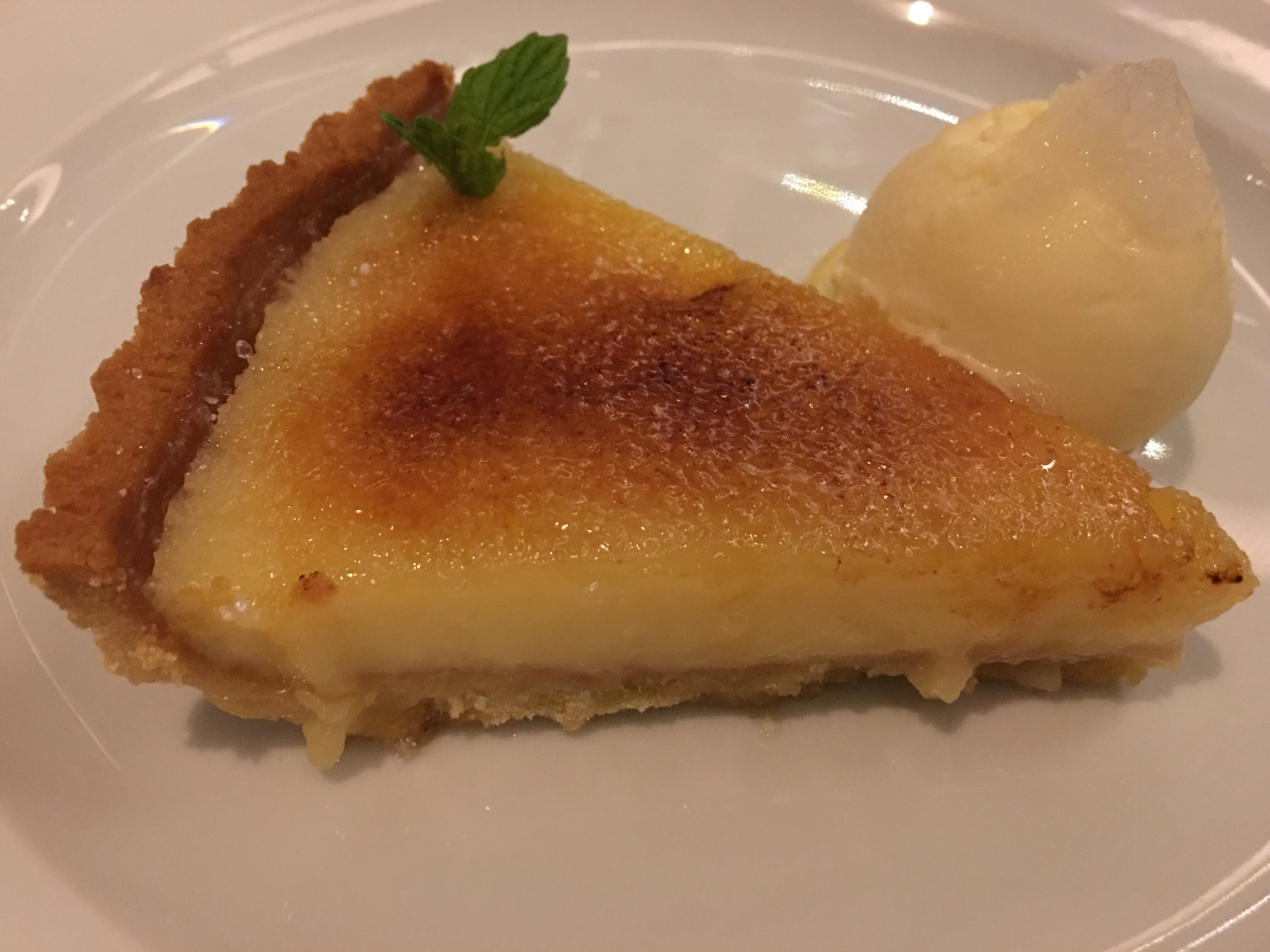 For dessert the lemon tart was an absolute winner. Light, crisp pastry and a tart – but not too tart – lemon filling with a caramalised sugar topping and a small scoop of ice cream. A perfect way to end the meal.