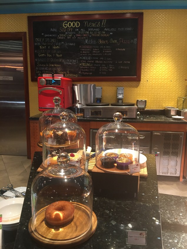 In an attempt to get a little fitter I’ve joined the gym at the Marriott Marquis. I decided after my first visit to reward my commitment with a take out from Quick Bites located on the ground floor. I now realise I have set a dangerous precedent because the food is really good! I’d describe it more of a cafe than a restaurant – it has a lovely light, bright, spacious feel to it with a fantastic long counter displaying sweet and savory items.