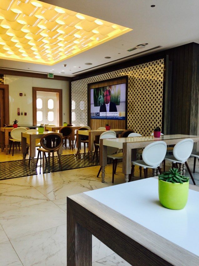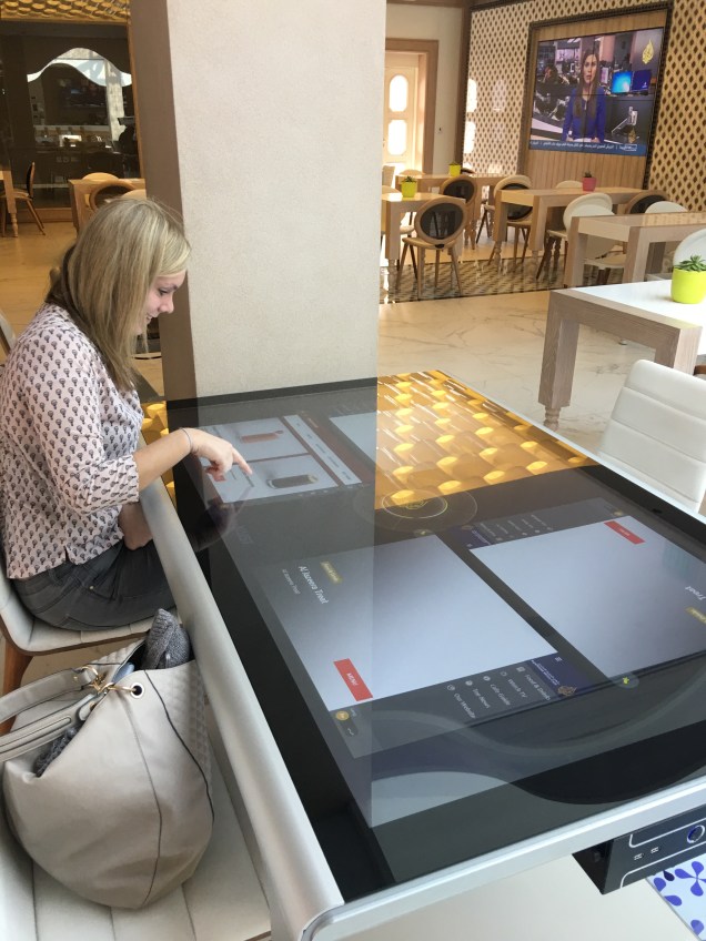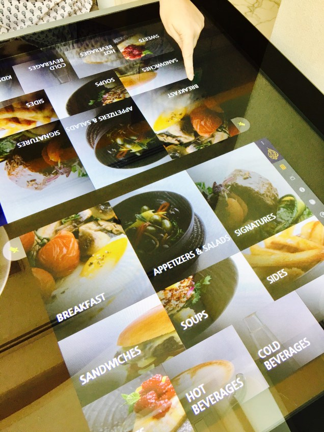 Katara can get very busy but on Friday morning it was really quiet and we didn’t have a problem finding a parking space or getting a table. We chose a table with an interactive screen where we could browse the menu, watch tv and play air hockey! If you’re on a digital detox there are ‘normal’ tables too. The restaurant is lovely and light, very comfortable and relaxing.