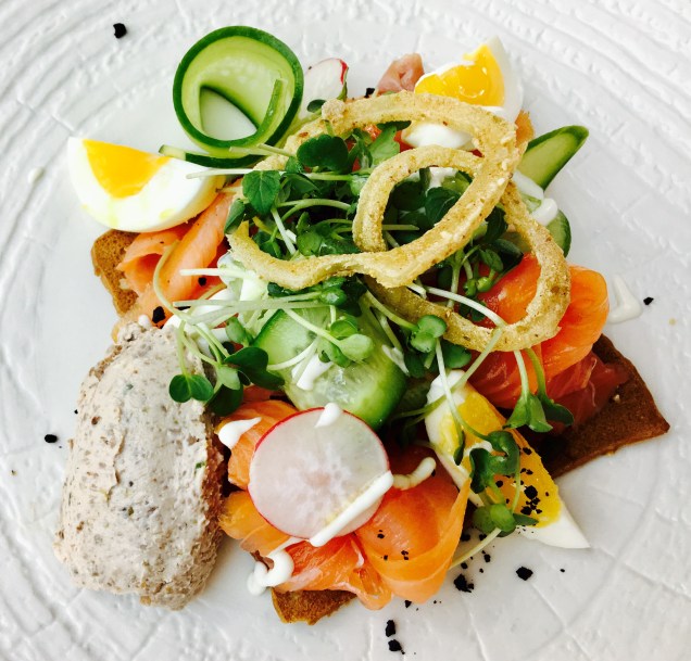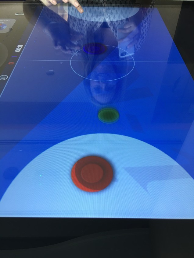 I ordered toasted rye bread with whipped goats cheese and smashed avocado and Louise choose the smoked salmon with walnut spread and quails egg. We also ordered fresh juices each – then we played air hockey! The server soon came over and set our screen to look like a table-cloth in preparation for our food. The food arrived in about 15 minutes and was nicely presented. My drink arrived but was quickly whisked away with an apology as they realised it wasn’t what I’d ordered!