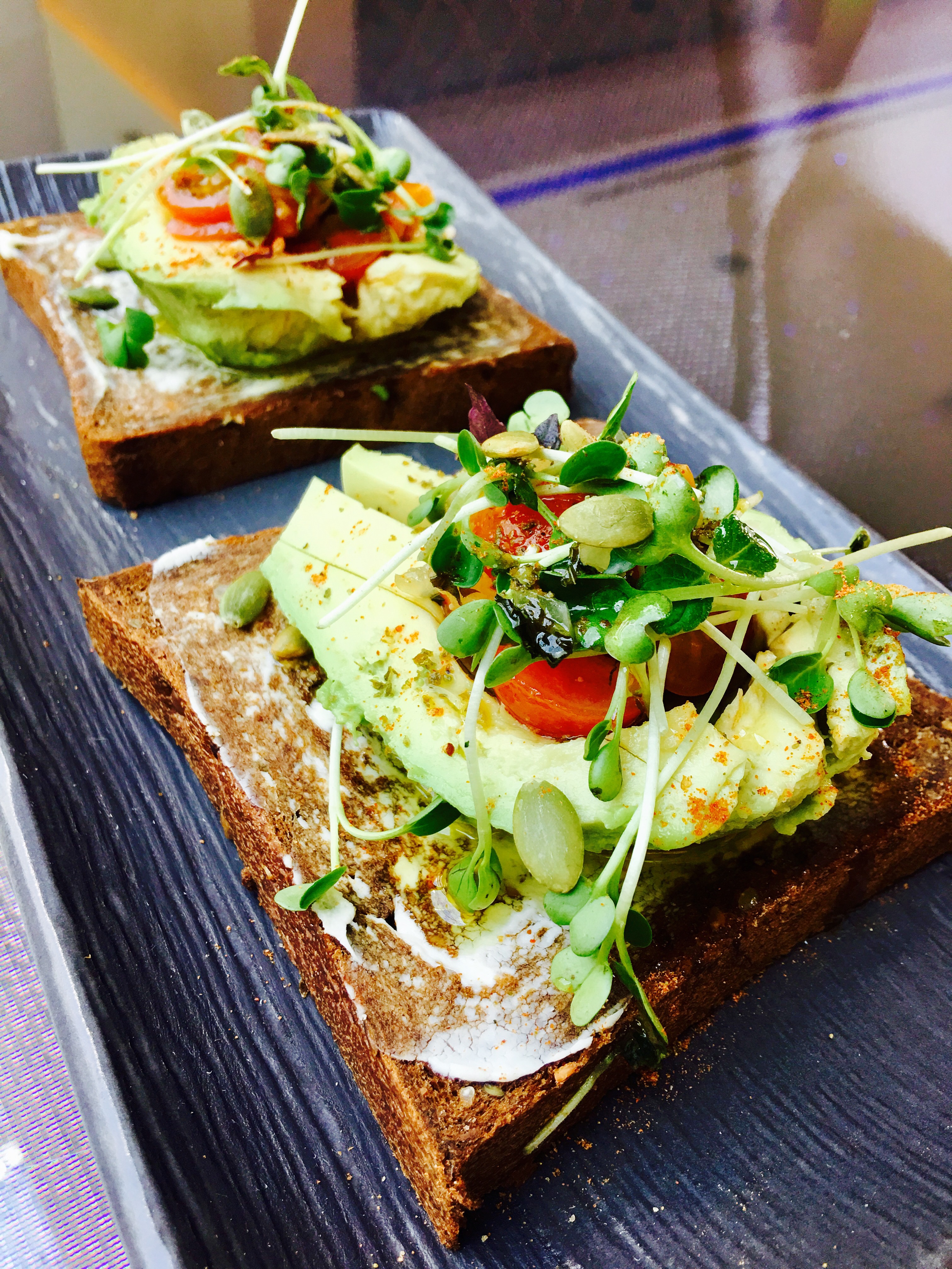 I ordered toasted rye bread with whipped goats cheese and smashed avocado and Louise choose the smoked salmon with walnut spread and quails egg. We also ordered fresh juices each – then we played air hockey! The server soon came over and set our screen to look like a table-cloth in preparation for our food. The food arrived in about 15 minutes and was nicely presented. My drink arrived but was quickly whisked away with an apology as they realised it wasn’t what I’d ordered!