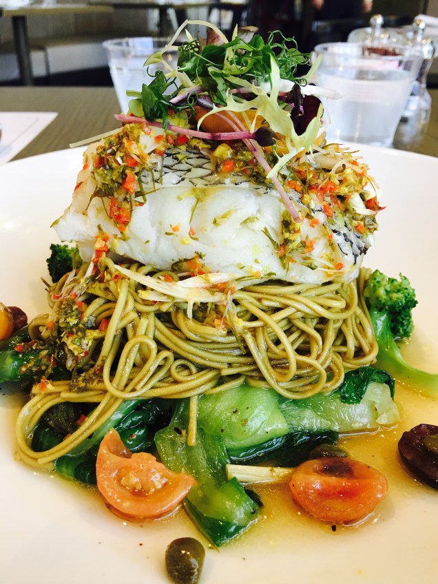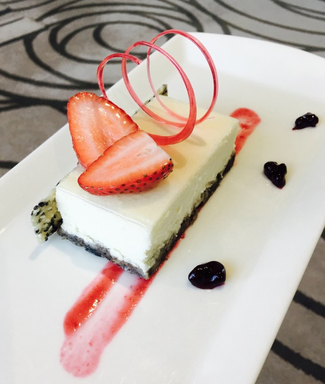We also sampled two dishes from the a la carte menu. The sea bass with crunchy vegetables and micro salad was a very generous portion size and full of flavour. The vanilla cheesecake with fresh strawberries was wonderfully rich and creamy with a crunchy biscuit base, it made me very happy.