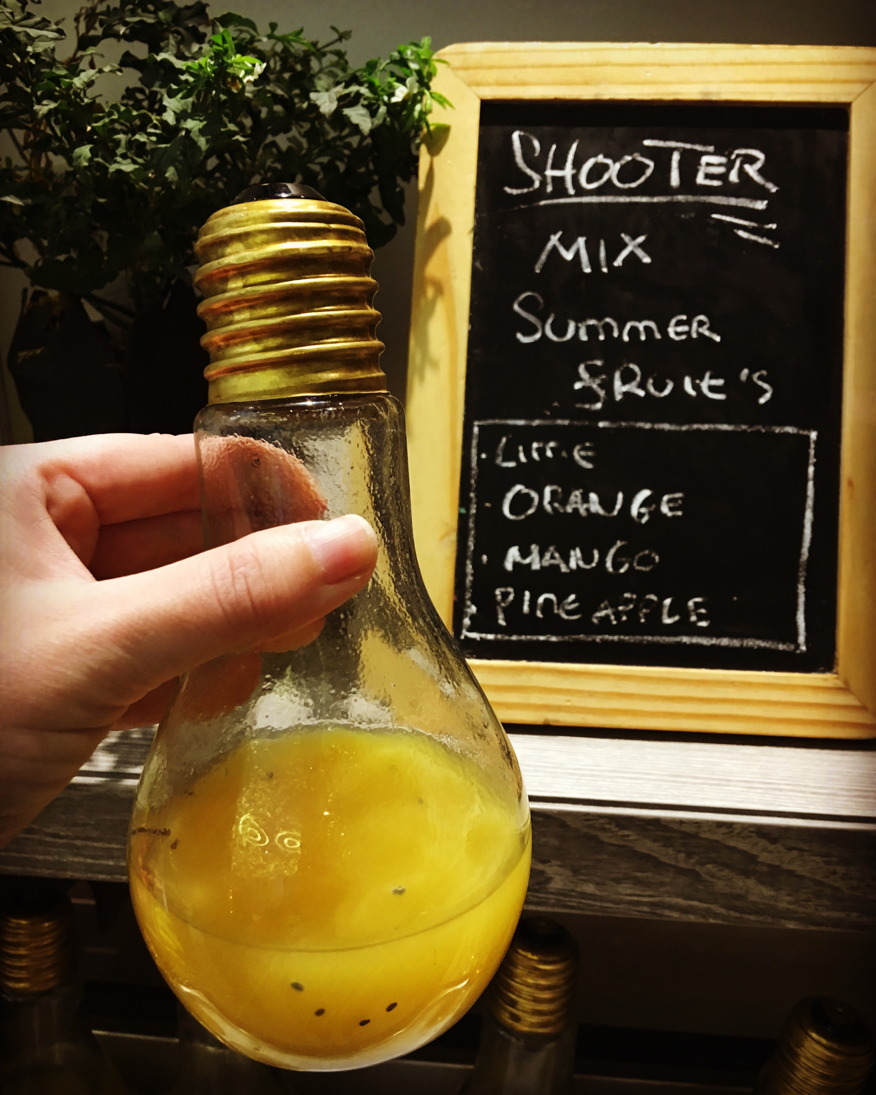 L2 has two choices available for diners – the buffet or the a la carte menu. At first glance the buffet is quite small but on closer inspection there are a good variety of dishes. Hot and cold mezze, soups and fresh bread, salads, hot mains (which change daily) such as roast chicken and lamb kofta and a good selection of homemade desserts plus cheeses. From the buffet we really enjoyed the chicken soup with focaccia, the beetroot and blue cheese salad, potato salad with yoghurt, the seafood stew and lamb kofta not to mention the traditional Umm Ali. The fresh fruit drinks in huge lightbulbs were a fun touch and very refreshing.
