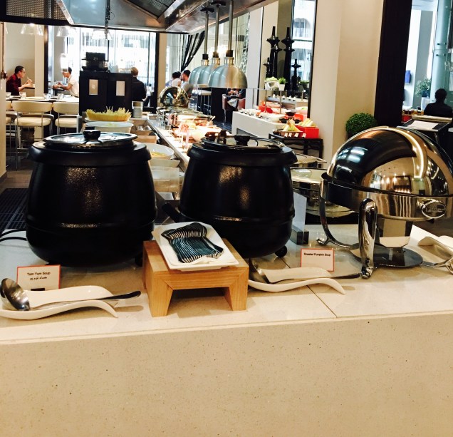 The ‘hot’ section offered spicy tom yum soup and a milder roasted pumpkin served with a selection of fresh breads. There was also a good range of main courses such as chicken roulade with pesto (very good) beef stew which was perfect for the rainy weather, black angus striploin with yorkshire puddings and roast potatoes.