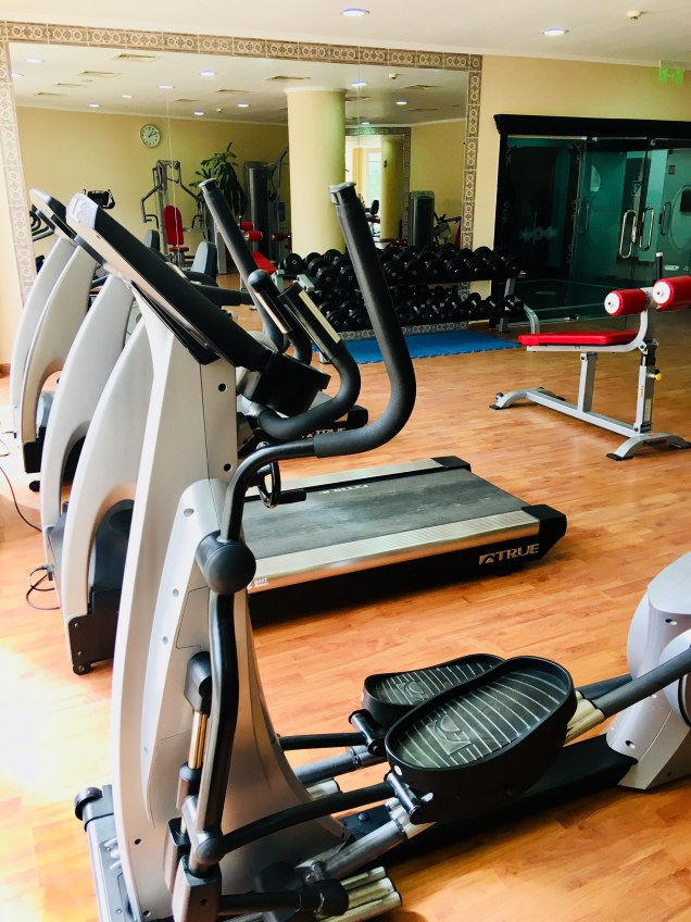 Inside the main building there are a couple of shops selling clothes, jewelry and souvenirs and an ATM. Also, just across from reception, there is a bar with TV screens, pool table, comfy sofas and huge windows allowing in lots of natural light. Steps lead to lower ground floor which is where the spa well equipped Gym is located.