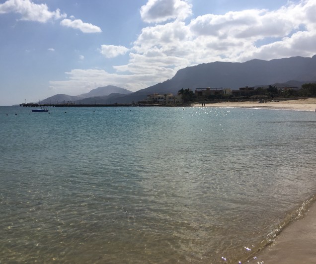 Eventually you arrive at the sea-shore. The beach is to the right, a long strip of golden sand with sun beds and umbrellas. From here you can also book pedlos, kayaks and go on inflatable rides. The entertainment team were also organizing beach volley ball and yoga here. The water is a lovely turquoise, very clear and perfect for snorkeling and diving in warmer months.