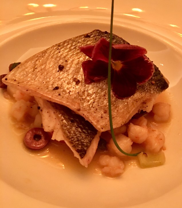 I was so absorbed in my cannelloni that I didn’t pay too much attention to what Greg had ordered but he was happily tucking into his dish of Seabass with prawns. The Seabass was light and the delicate fish broth with prawns wasn’t too overpowering- each element of the dish came together well. The only negative was that the skin had been left on and it wasn’t crispy so it was a bit of a faff to remove it.