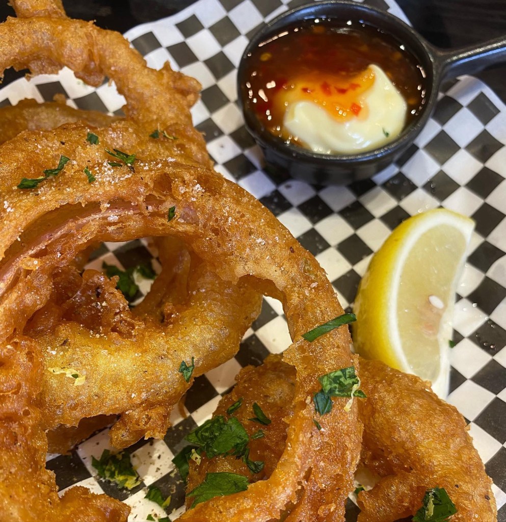 Onion rings with sweet chili mayo