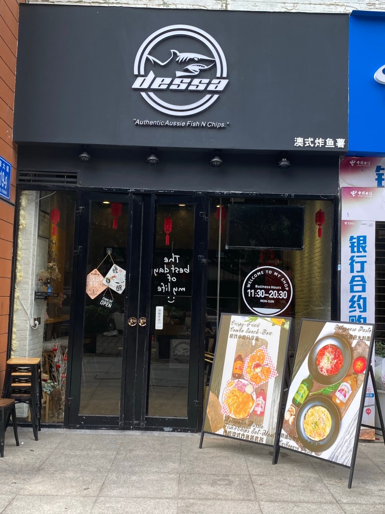 One of the (few) things I miss about England is comfort food; roast dinners, parmos, sausage and mash, a dirty kebab and of course fish & chips. On our traditional Christmas trip to the UK the chippy is the first place we go to in London once we’ve landed! Due to the current situation we can’t leave China so the possibility of us getting fish & chips is slim but I had seen several posts about Dessa, an Australian chippy in Chegongmiao so last week we went to check it out.
