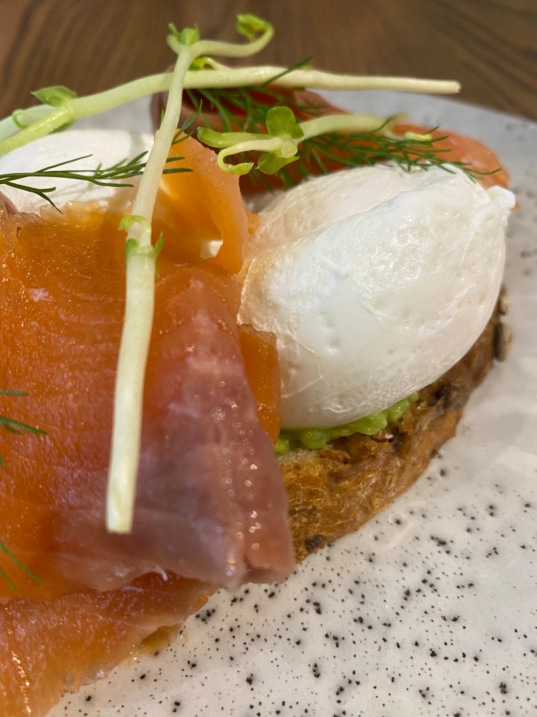 Meh, maybe we just ate there too much when we lived close by but our recent visit left us flat. My smoked salmon with eggs with avocado on sourdough was ok, but Greg’s scrambled egg with mushroom was stone cold and the chai latte was just weird.