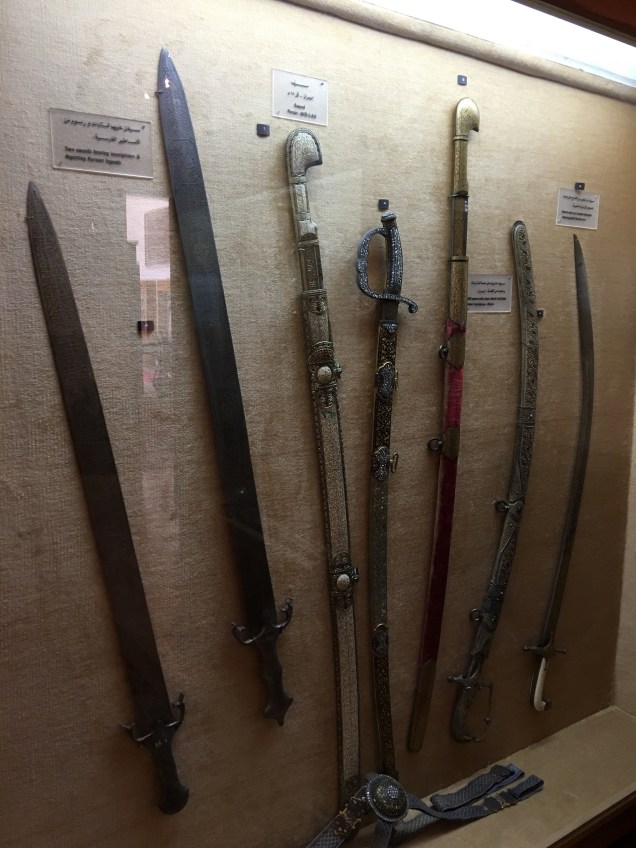 We probably spent the longest time here. The exhibits showcase how weaponry has developed through the ages. There is a huge selection of daggers, swords, knives and guns. It was really interesting to see how technology has changed and led to advancements but at the same time seeing the commonality of basic designs. There was some weird and wonderful exhibits here and everything was labeled in English and Arabic.