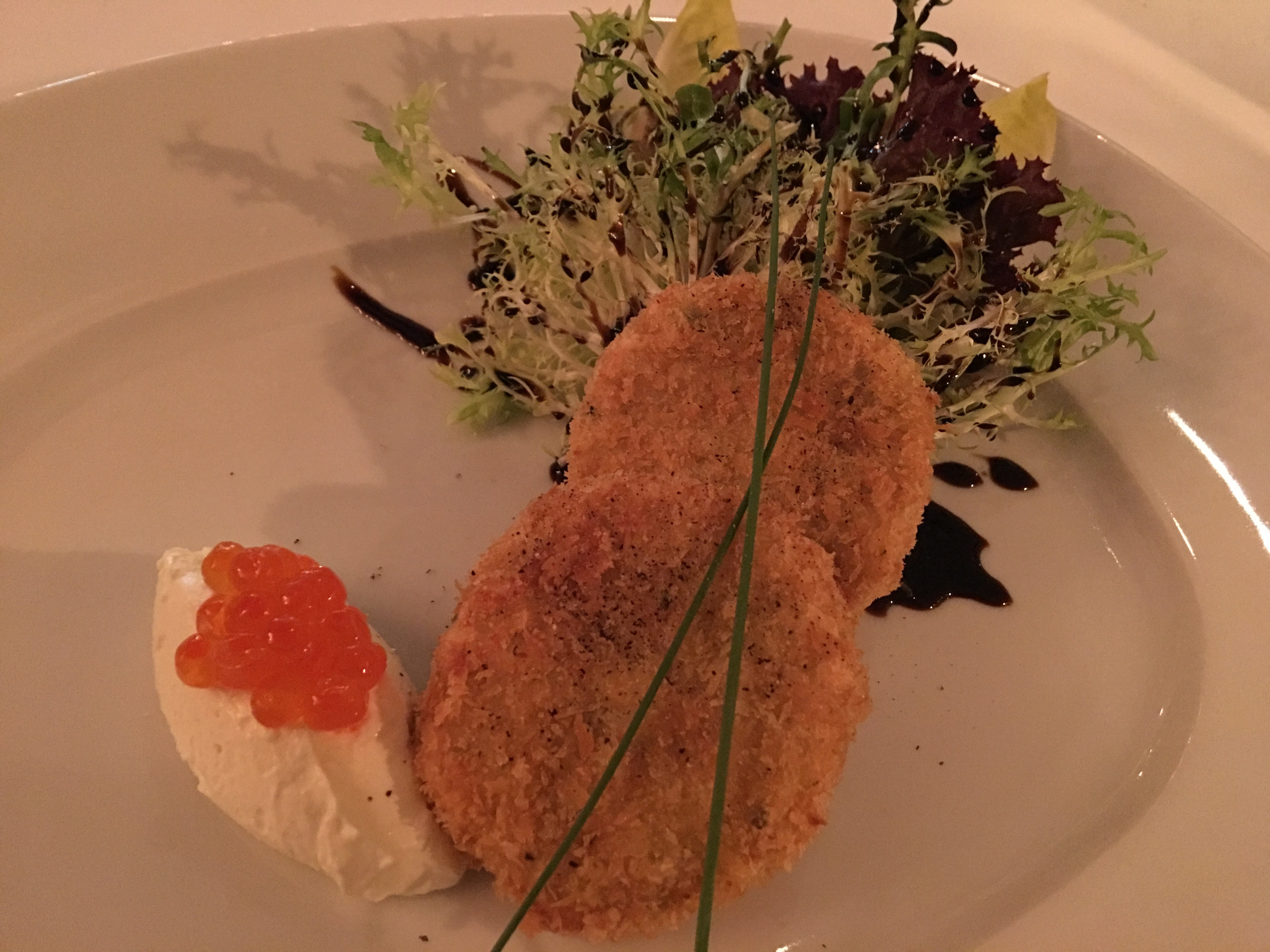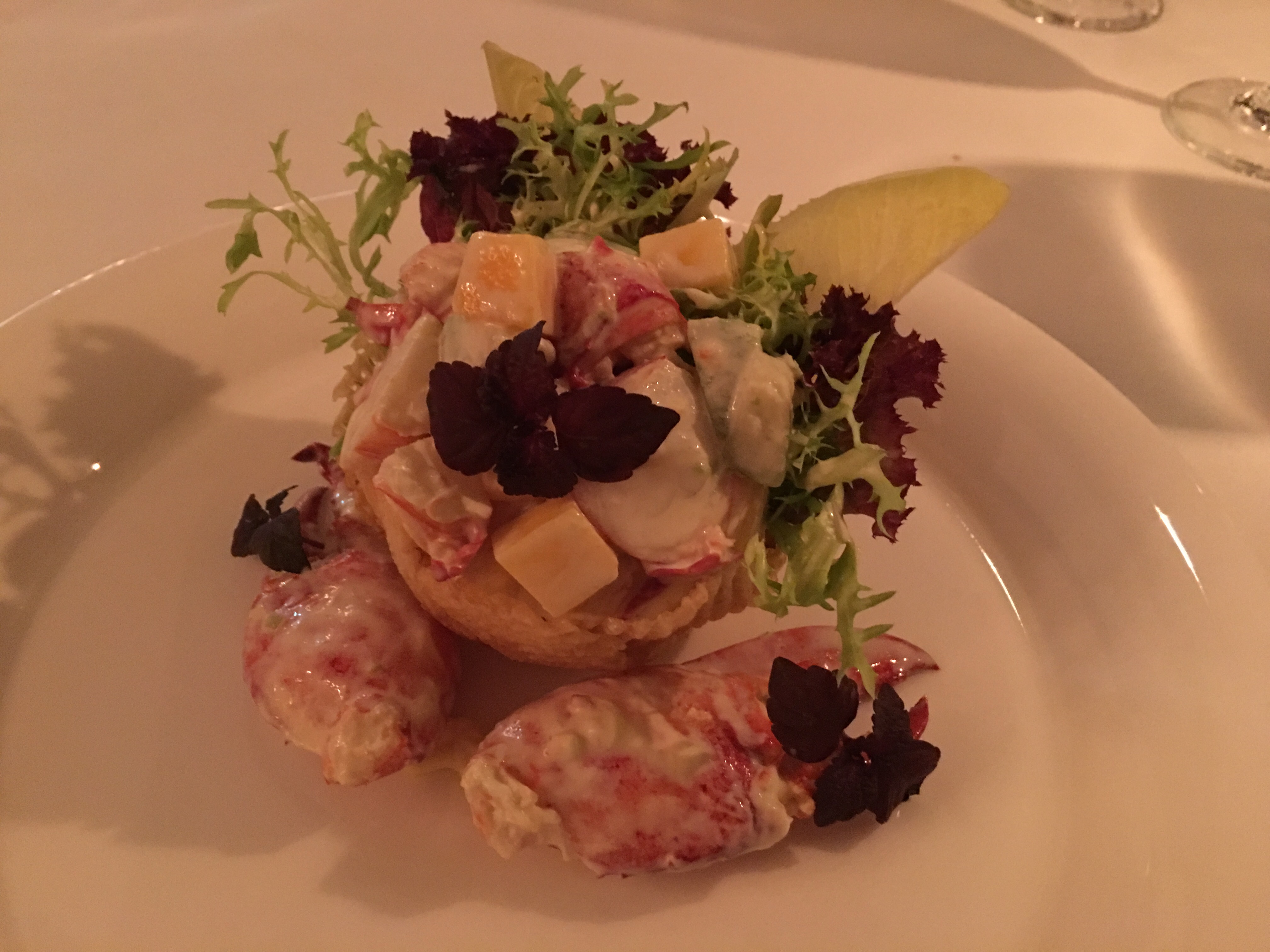 I opted for the lobster cocktail (I have recently discovered a love of seafood) and Greg chose crab cakes. Whilst waiting for our starters we were brought an amuse bouche. A deep fried oyster with a ‘volcano sauce’ which was absolutely delicious and the sauce got our taste buds singing!