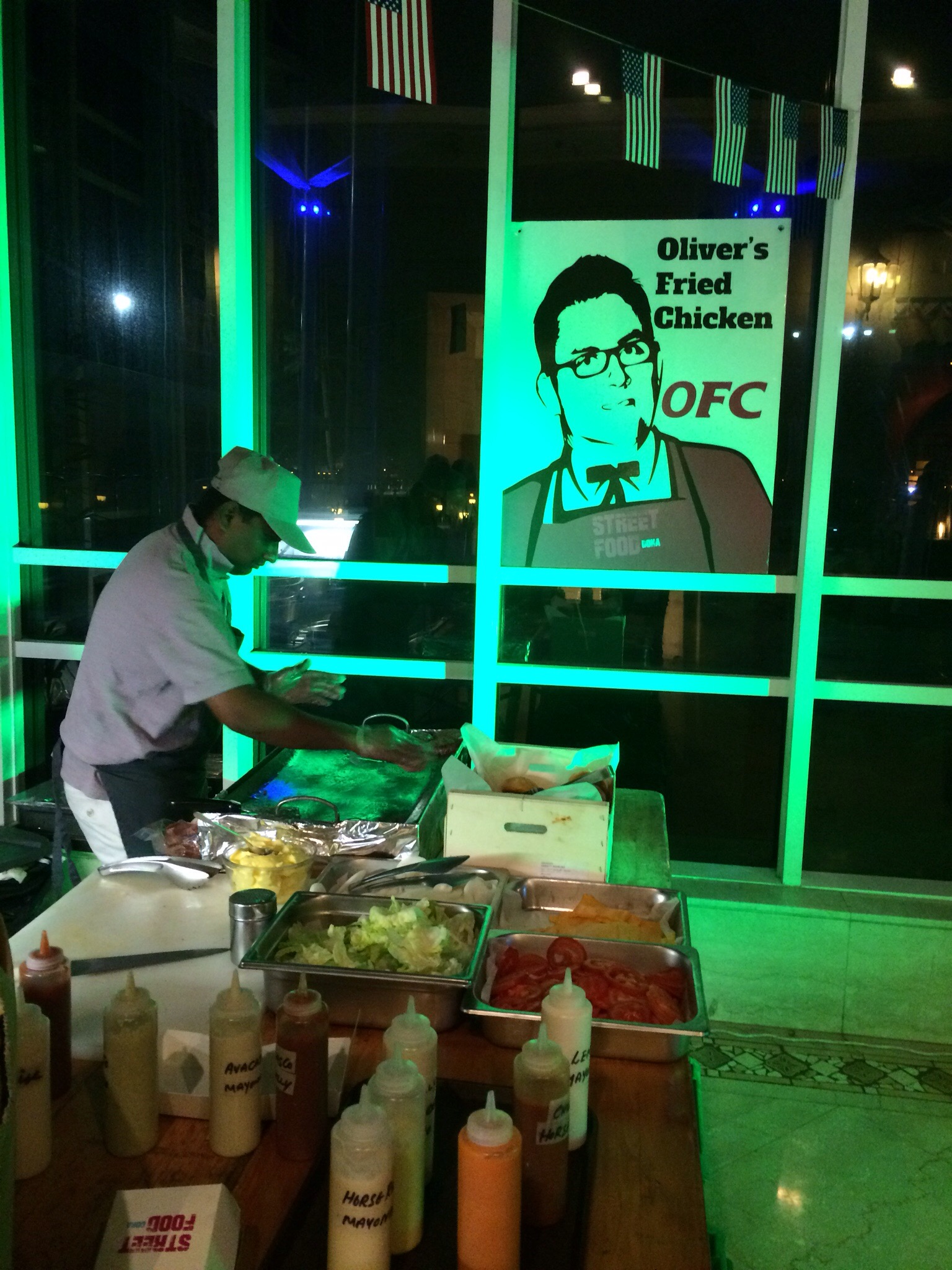During a Twitter conversation about places to eat on a Thursday evening ‘Street Food’ at the Marriott was recommended as a place to go. I needed very little persuading to go and check it out but when I heard that an Entertainer voucher could also be used within 10 minutes I’d had a phone call back to confirm our reservation!