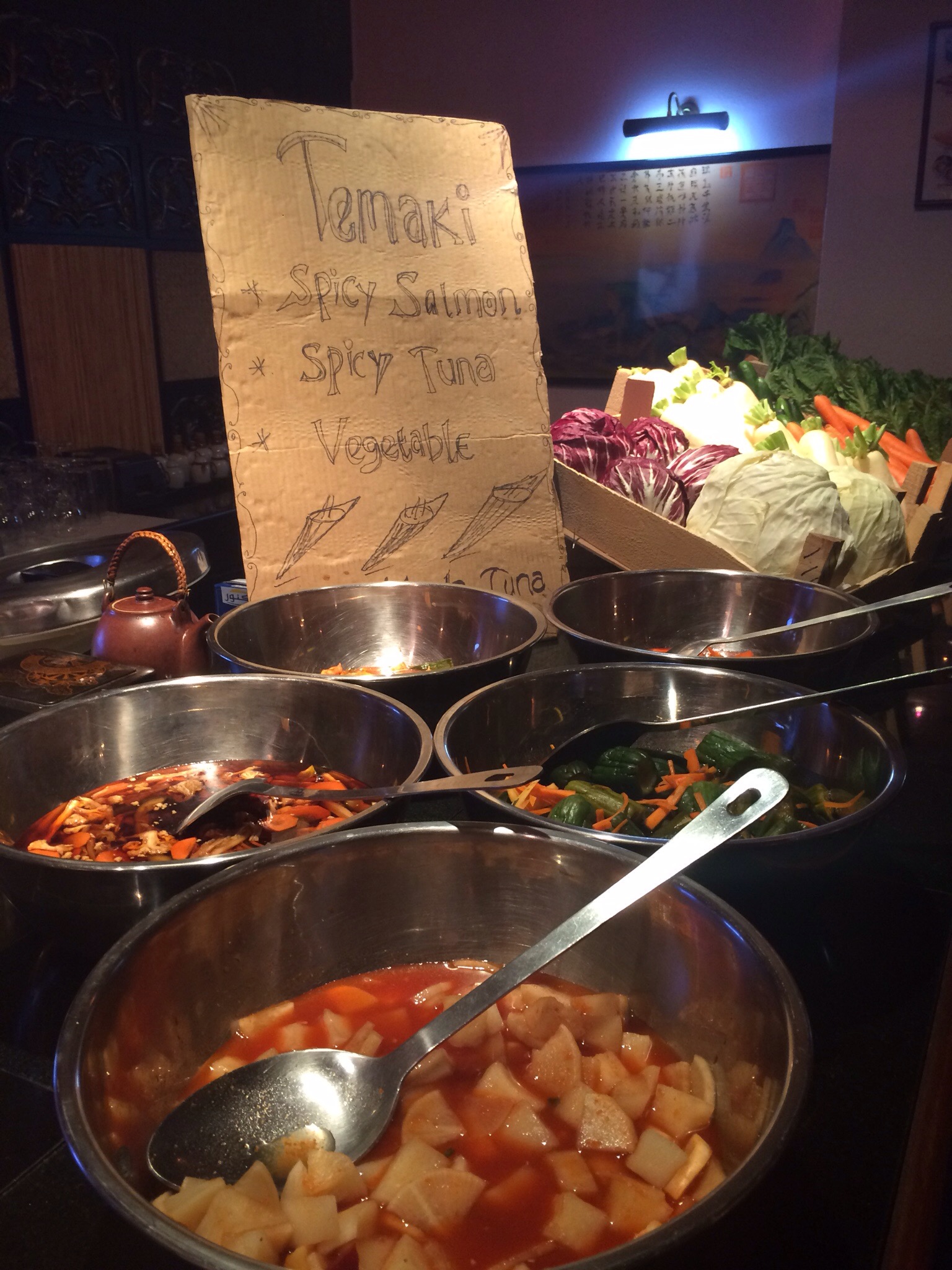 When we arrived just before 7pm it was fairly quiet, we were greeted and shown to our table within Salsa restaurant. The table we were given was really close to the band (great if your with a group for a party) but we felt it would be too loud so we asked if we could move and without hesitation were offered a table in Taj Rasoi the Indian restaurant where it was a little quieter. On Thursday evening you can sit in any of the hotel restaurants located along a corridor then just wander in and out of all the restaurants to the different live cooking stations.